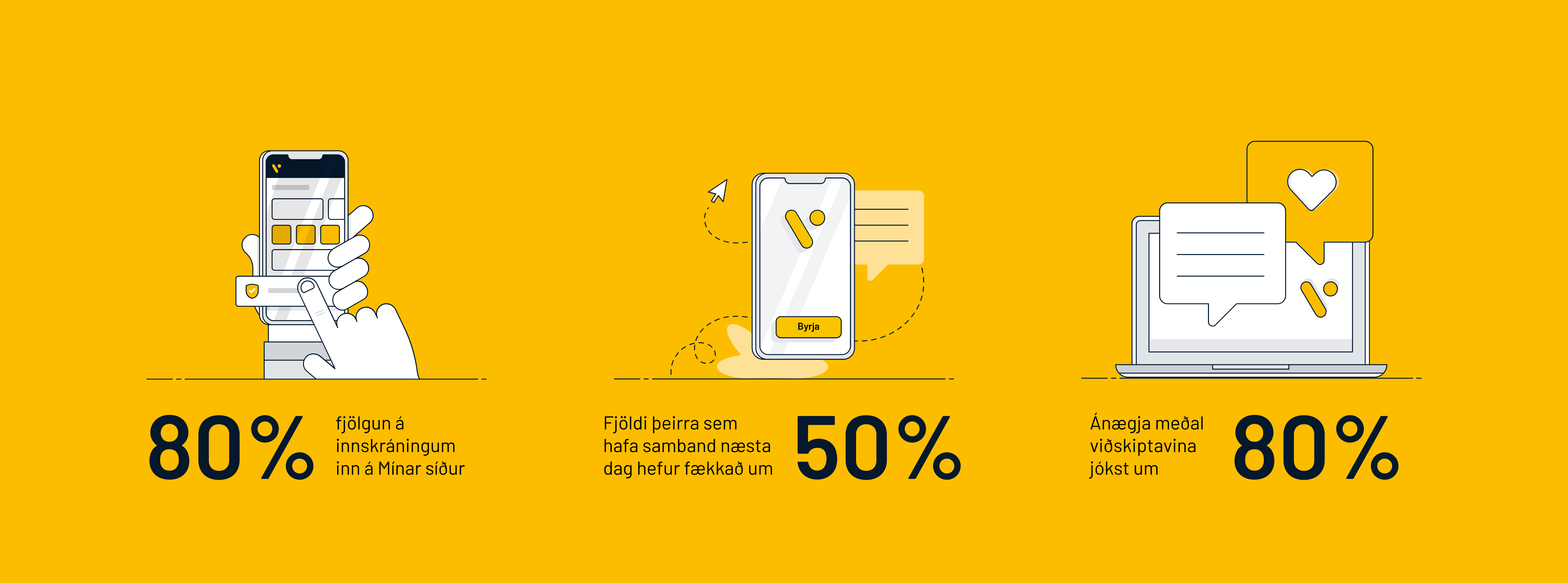 By facilitating all experiences and interfaces, the pressure on Vördur's employees is reduced and the customer receives service on their terms at their convenience. Customers don't have to wait in line to get their issues resolved. Whether the customer is asking questions about insurance or reporting damages, they can conduct their business exactly as they wish. All customers are number one in line and receive an appropriate service.