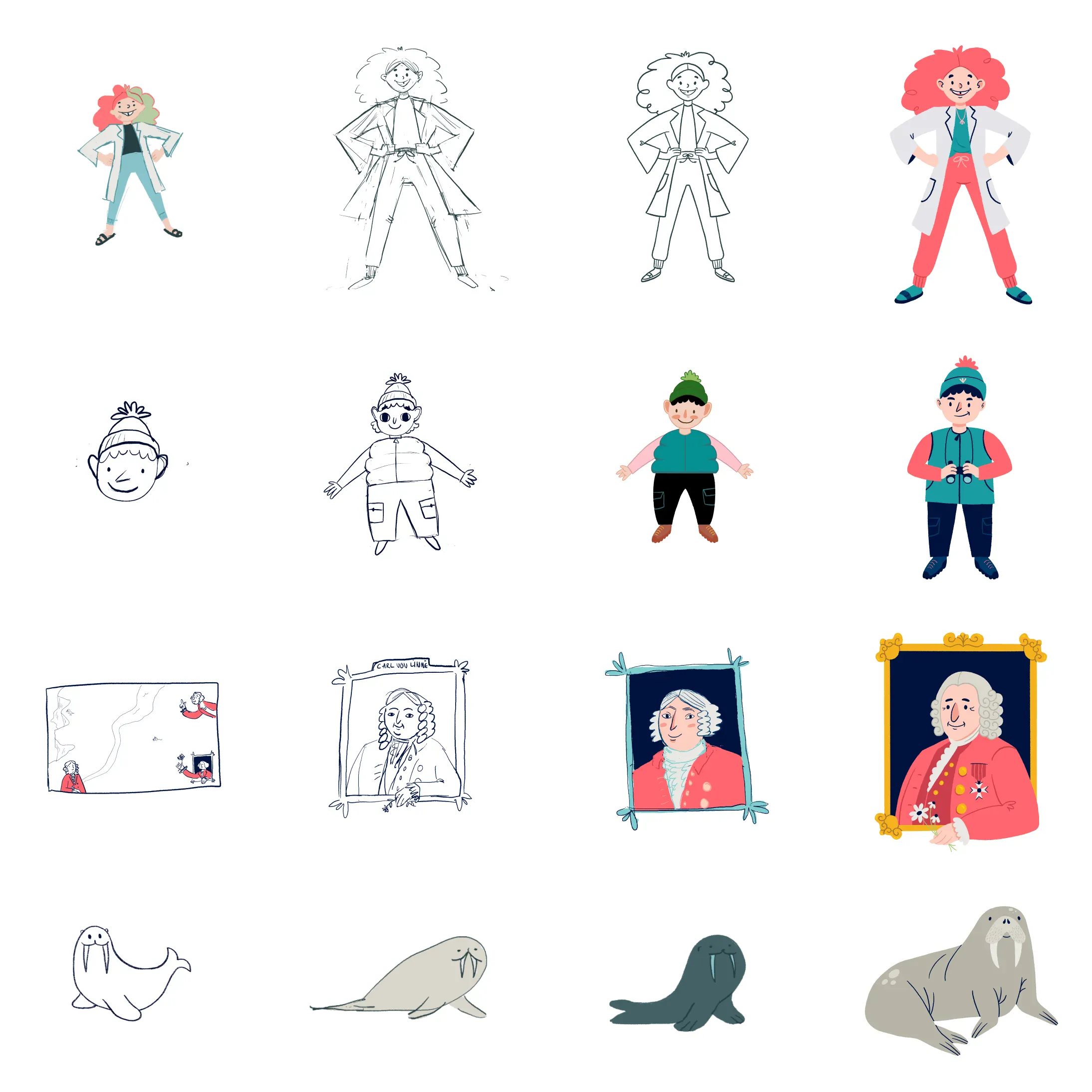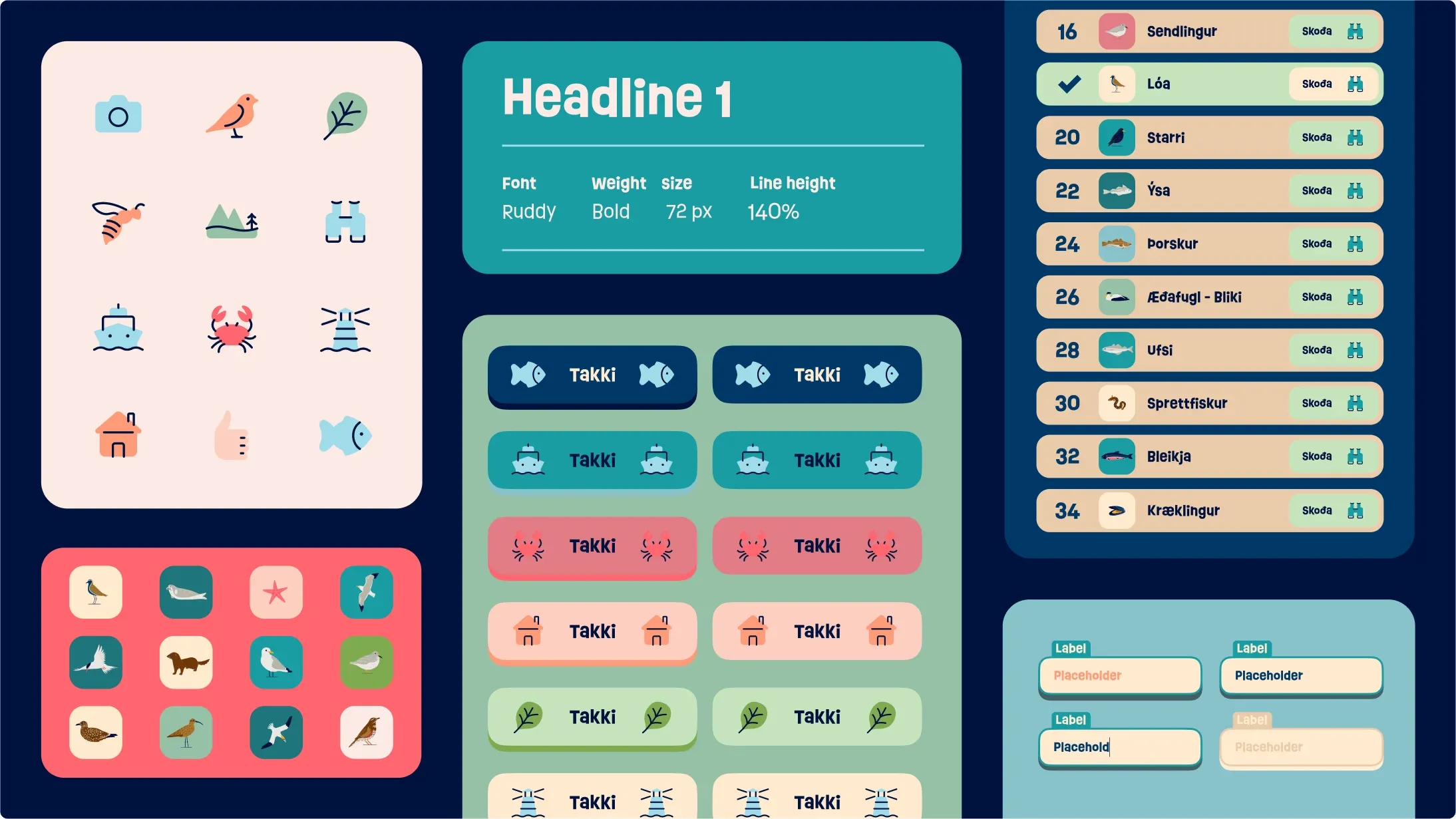 To make the game accessible for young users, it was centered around an interactive map inspired by the Science and Learning Center’s layout. This map features colorful illustrated animals that children can compare to real exhibits, guided by Fúsi and friends. The design focused on clarity and visual appeal for tablet screens. With the vibrant world in place, the next phase involved creating 61 animal illustrations and refining the overall gameplay to highlight Iceland’s diverse wildlife.