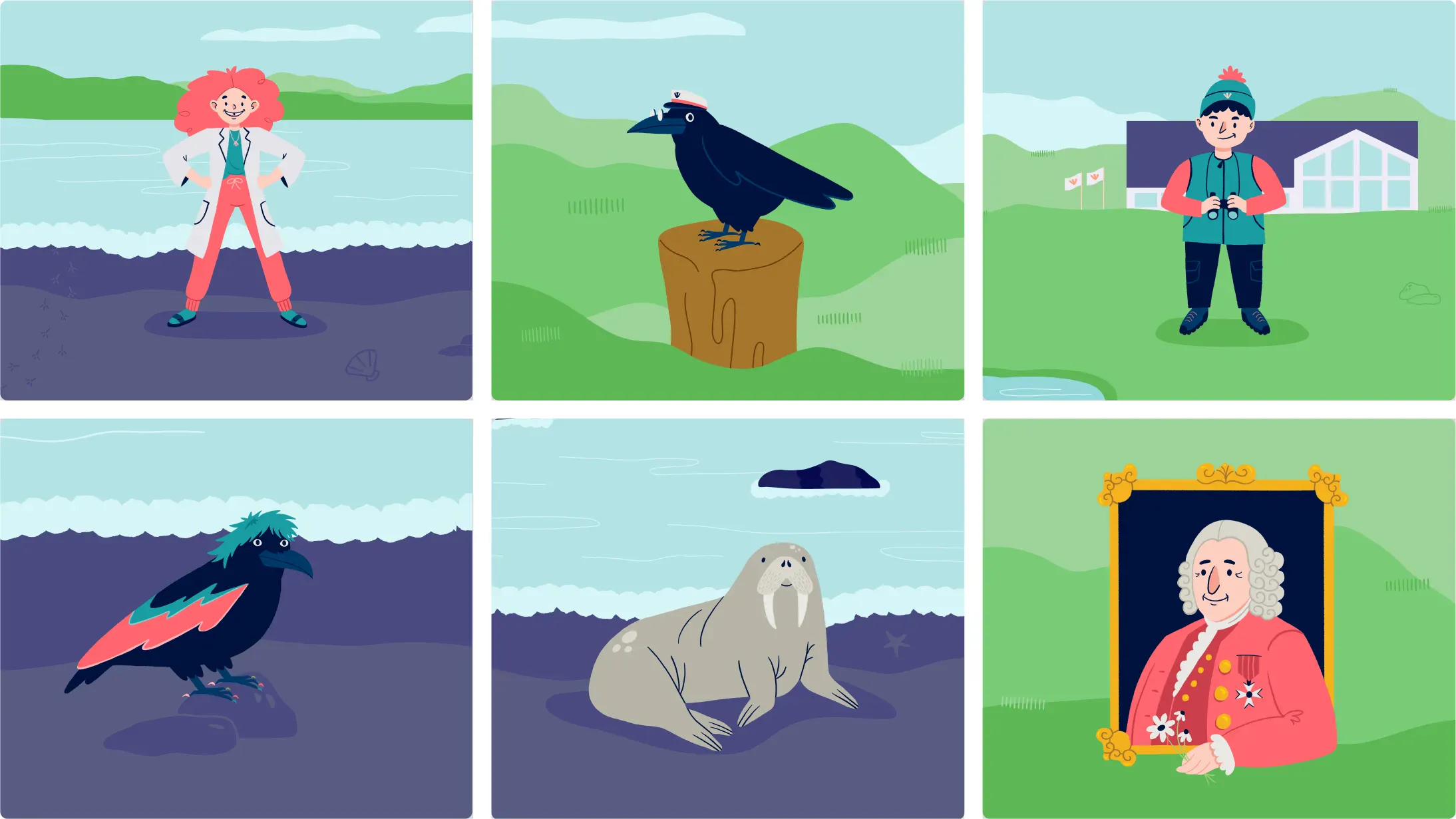 At the start of the project, the game concept was still developing. Initial character ideas and a rough educational outline were provided by the client. In collaboration with the Suðurnes Science and Learning Center, a colorful and engaging world was created—defining environments, characters, and gameplay. The cast includes Fróðleiks-Fúsi, Vísinda-Linda, RostunGulli, clever ravens Reyn and Rýn, biologist Carl von Linné, and Lína Appelsína, who guide players and share fun animal facts throughout the game.