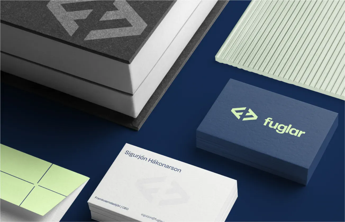 The new Fuglar logo draws inspiration from programming brackets and the letter “F,” forming a geometric symbol that reflects the company’s roots in technology. Its abstract bird-like shape pays homage to Fuglar’s name, which means “birds” in Icelandic, symbolizing freedom, innovation, and forward motion. The result is a logo that embodies trust, reliability, and creativity.