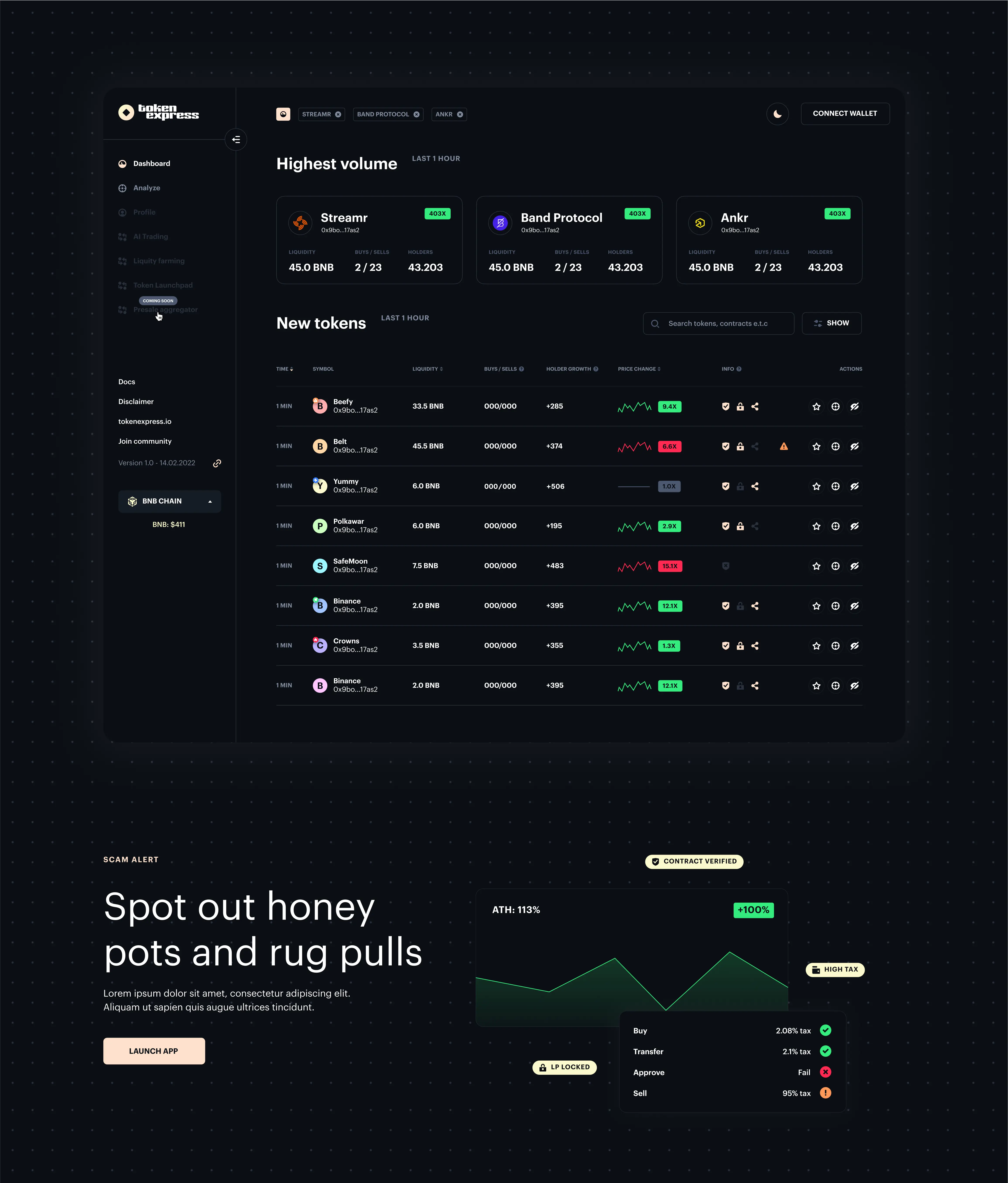 Our focus for the Token Express website was clear: a landing page that highlights key features and empowers informed decisions. We prioritized a user-friendly experience, with crystal-clear content and intuitive navigation. The result? An informative, easy-to-use platform ready for investors.