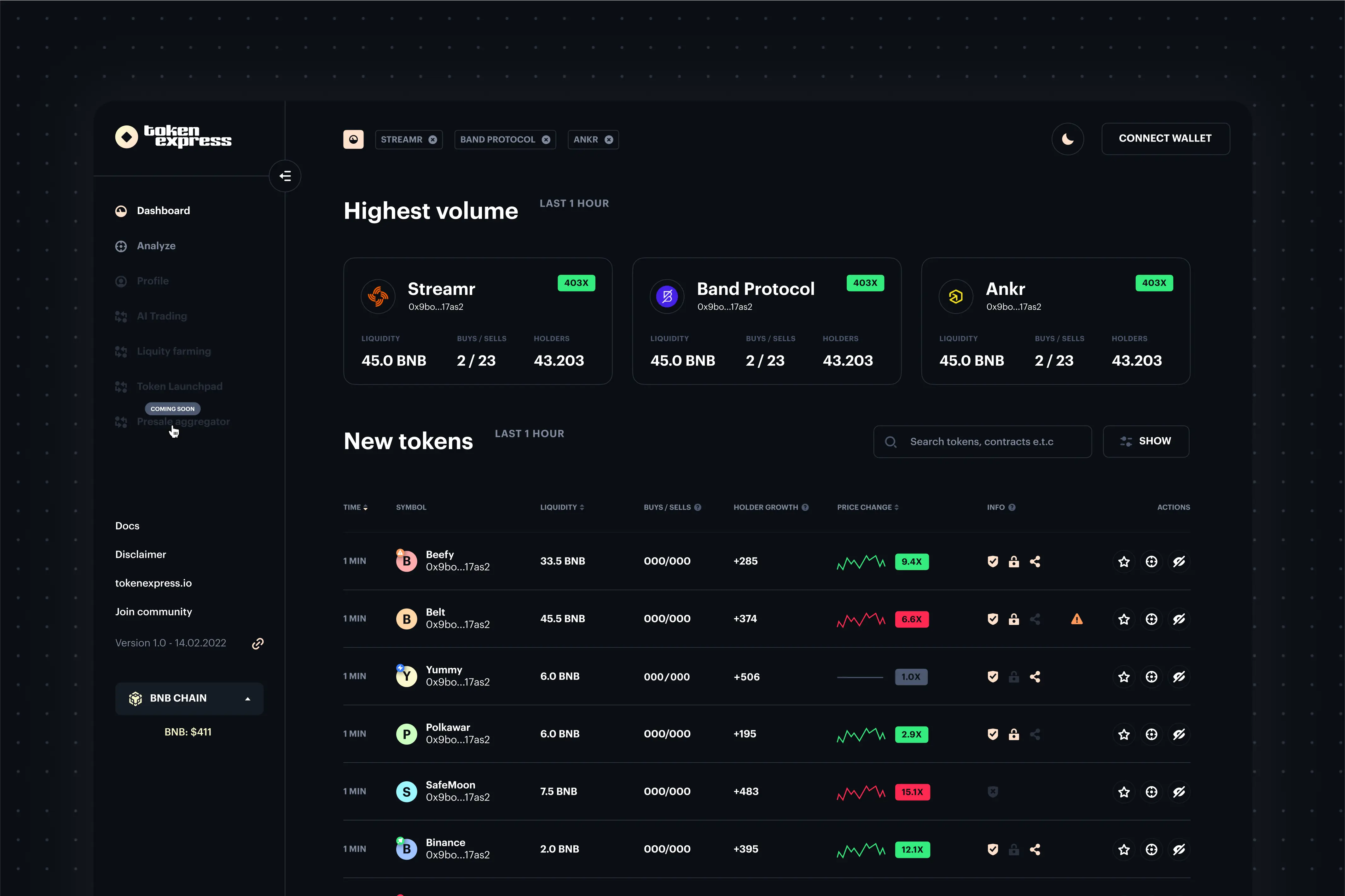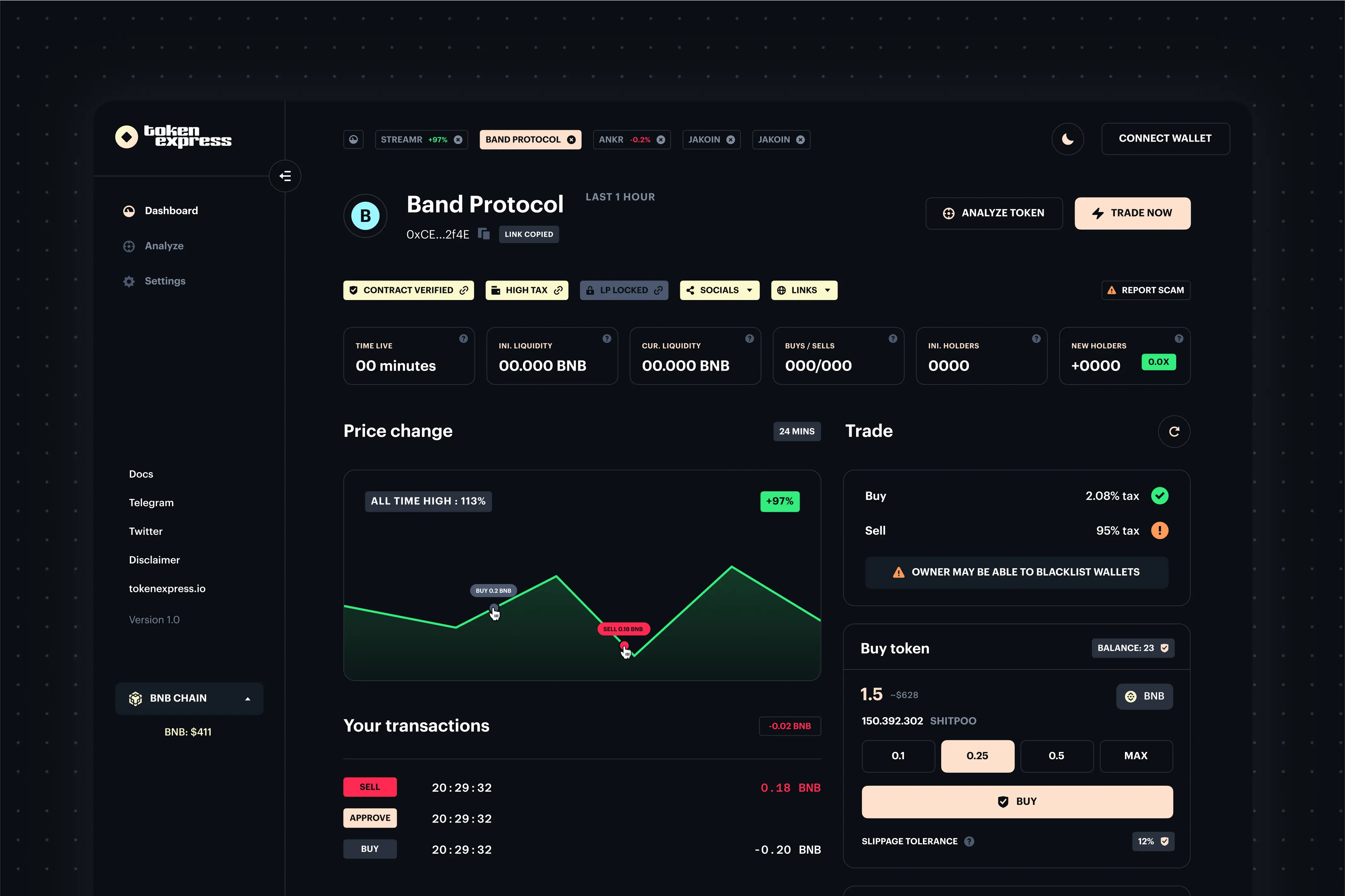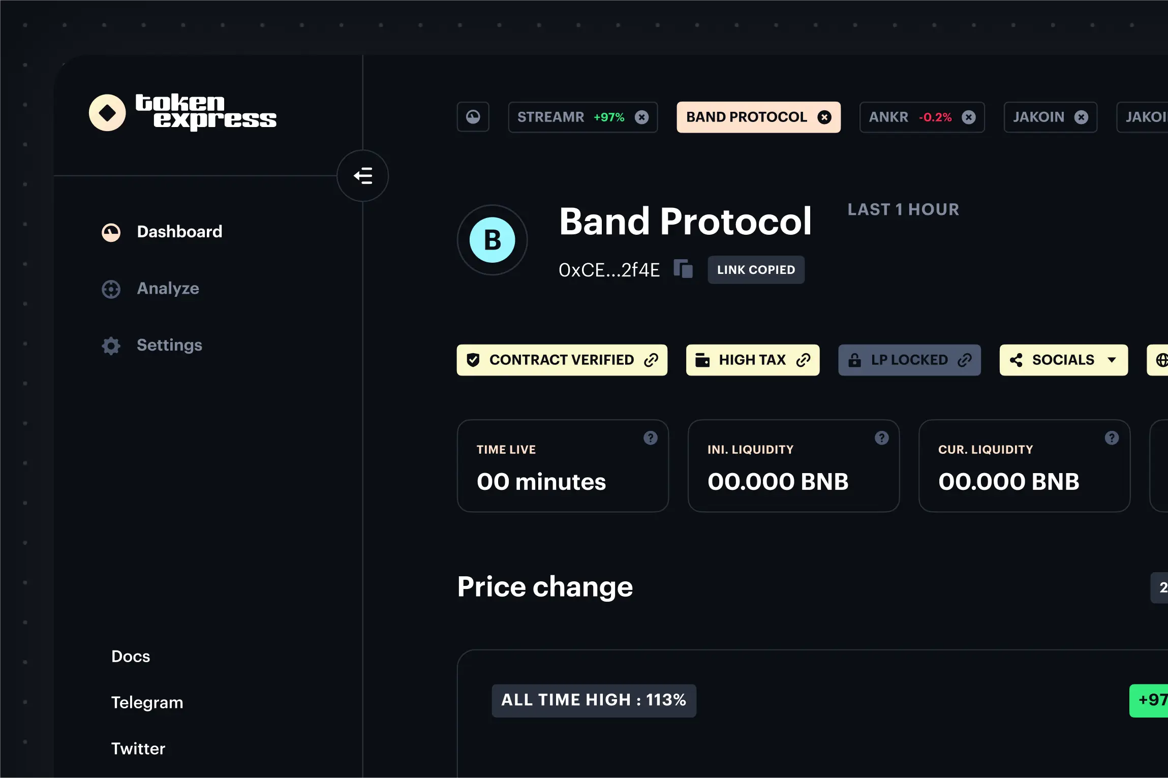 Token Express is a fintech company empowering investors to navigate the digital currency market with confidence. Their all-in-one dashboard enables faster, more effective trading while helping you mitigate the inherent risks of being an early mover in this dynamic space.